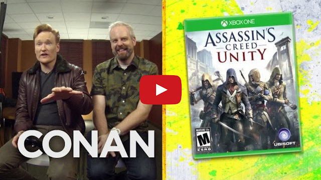 Watch Conan O’Brien clumsily test out the seventh installment in the Assassin’s Creed series, Assassin’s Creed: Unity (which comes out today in North America).
