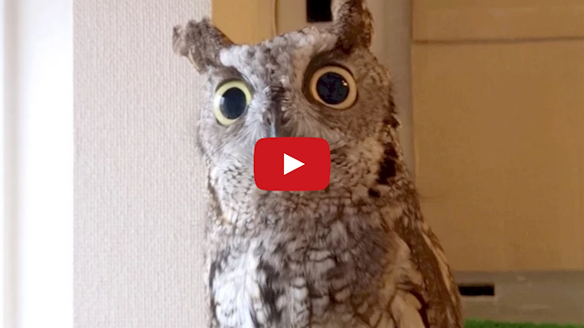 Dramatic Owl by Tastefully Offensive Kuu the screech owl does an impression of the Dramatic Chipmunk meme when he spots a flying crow while staring out the window. Previously: Kuu Tries to Comprehend iPhone Screen [kuuowl]