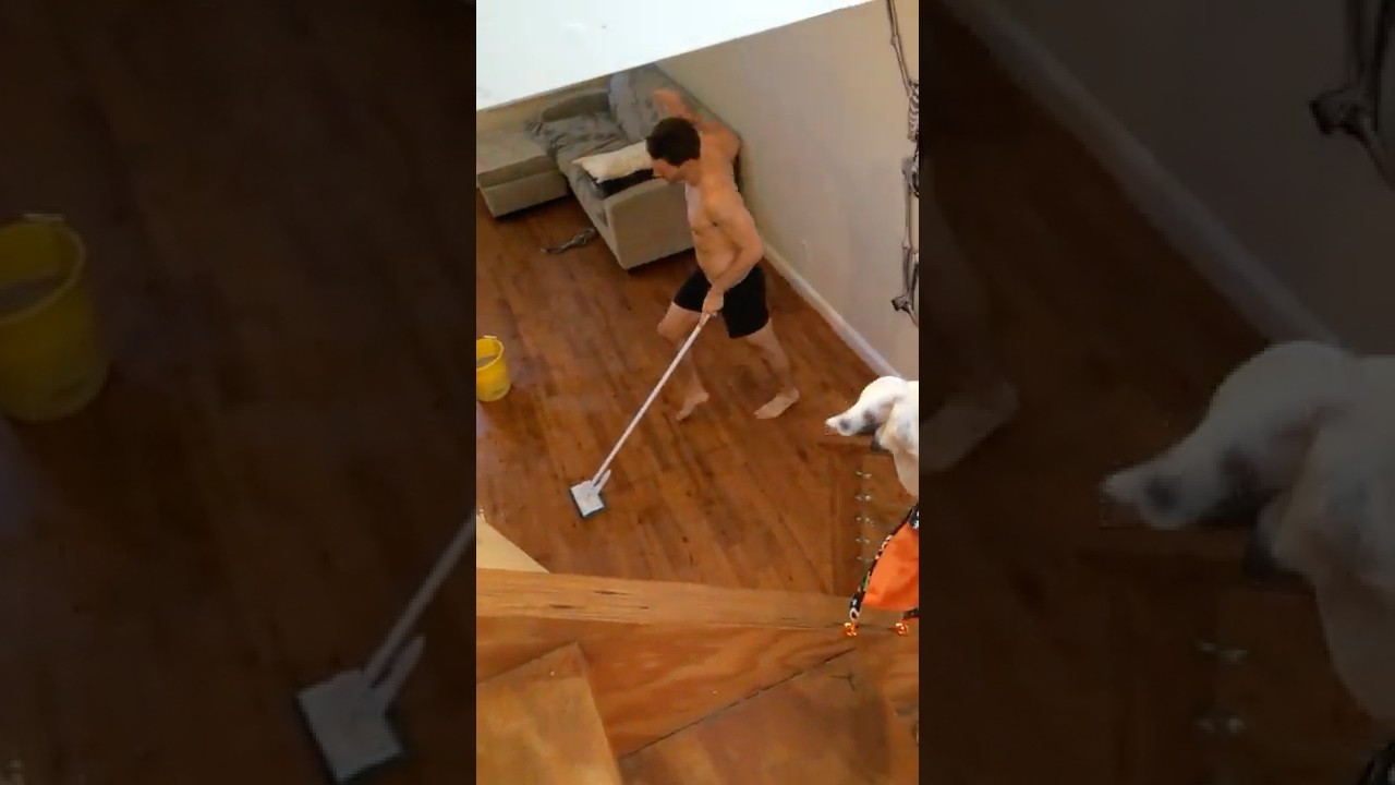 YouTube user Krewski sneaks up on his roommate, Jimmy Pope, mopping the floor while singing and dancing to Sheena Easton’s “Morning Train (Nine to Five)“.