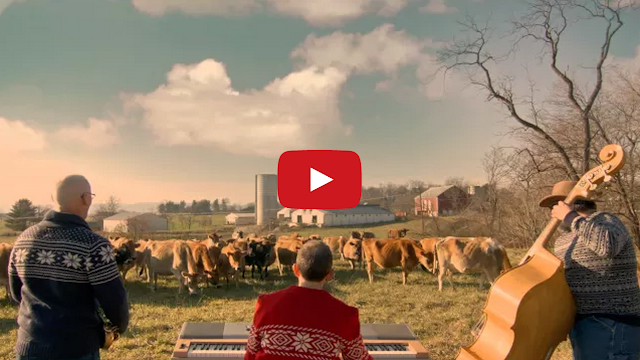 The happy dairy cows from Holter Farm in Frederick County, Maryland, curiously investigate as three men perform a smooth jazz cover of the classic Christmas carol, “Deck the Halls.”