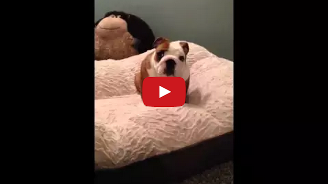 Chunk is an adorable 4-month-old English Bulldog puppy, and he is completely in love with his new bed. The brand new doggy bed is made of memory foam and looks super comfy. It’s no wonder the cute little guy can’t help himself from going a little nuts with excitement and rolling all over it.