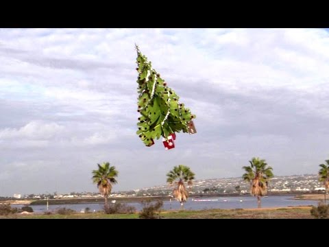 In honor of the holidays, designer Otto Dieffenbach of Flyguy Promotions created a life-size, fully decorated, flying Christmas tree. Watch as he test flies the remote-controlled tree near Mission Bay in San Diego, California.