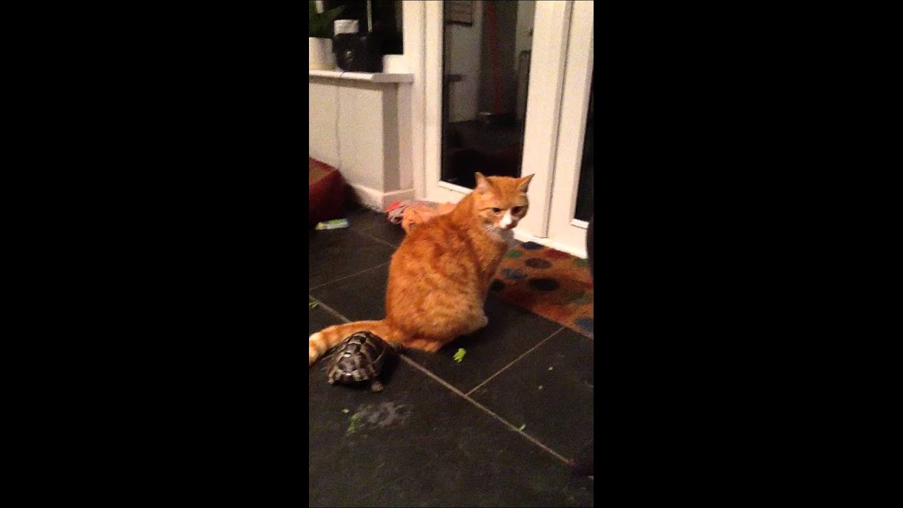Little Tortoise Relentlessly Attacks Patient Cat ByTastefully Offensive December 20, 2014 Fred the cat gets bullied by an grumpy little tortoise.