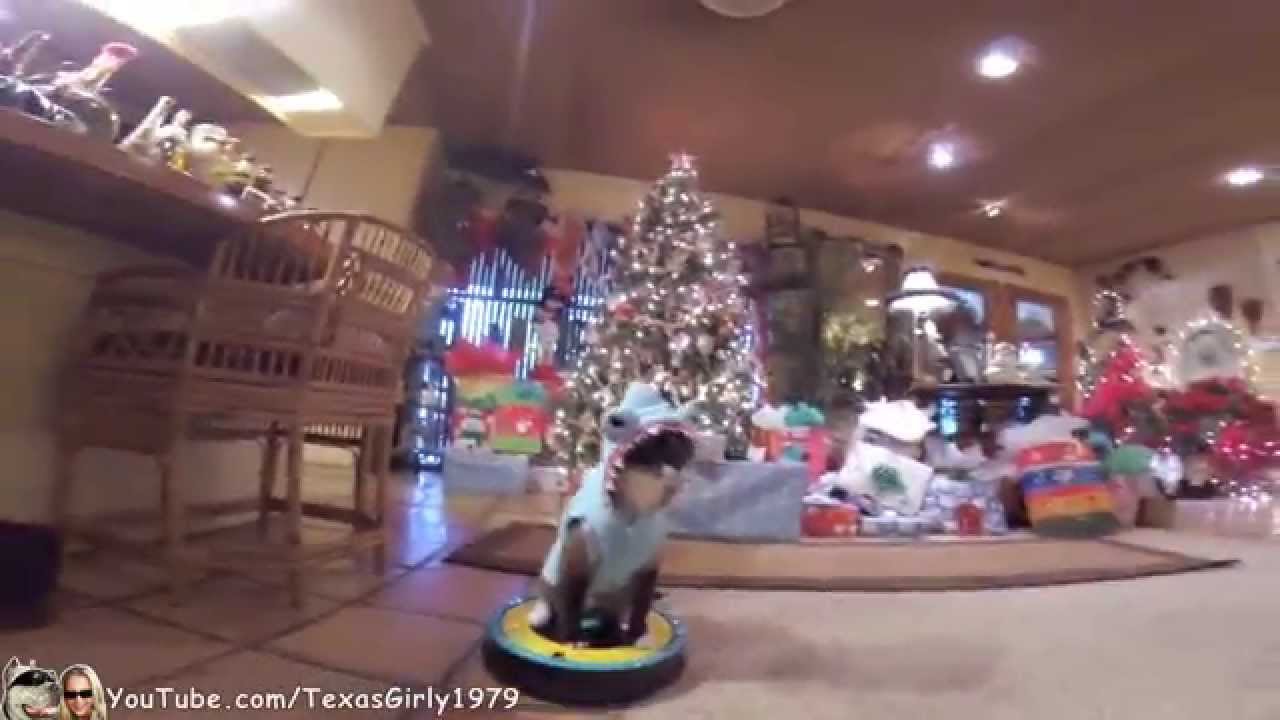 Shark Cat Rides His Roomba Around the Christmas Tree