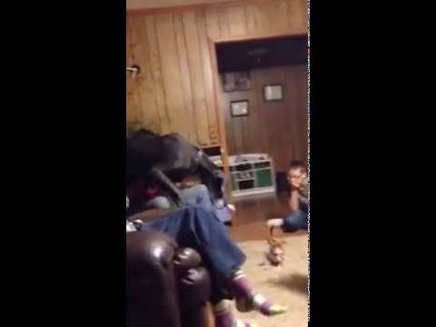 A 105-pound Great Dane named Duke freaks out and gets to higher ground when he encounters a fearless 3.5-pound chihuahua for the first time.