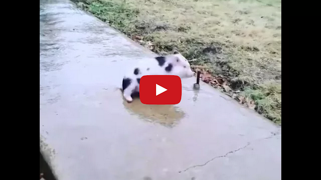 Adorable Spotted Piglet Slides Down Frozen Sidewalk