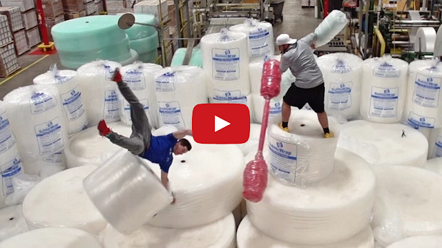 The dudes from Dude Perfect takes over the Bubble Wrap factory to battle each other in a series of Bubble Wrap-themed sporting events, including jousting, scooter racing, and paintball.