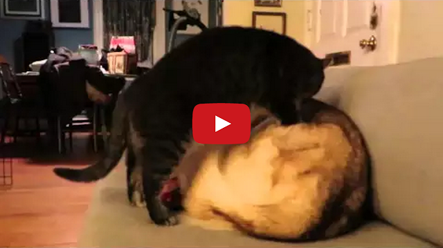 Cat Turns Sleeping Husky Dog Into Cozy Cat Bed