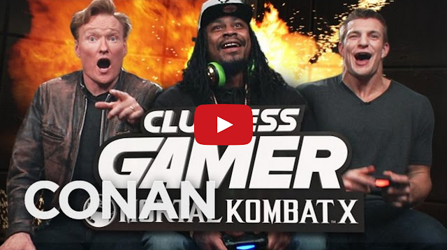 Conan O’Brien flew to Arizona to host a Super Bowl-themed Mortal Kombat X video game showdown between New England Patriots tight end Rob “Gronk” Gronkowski and Seattle Seahawks running back Marshawn “Beast Mode” Lynch.