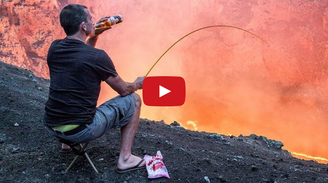 Crazy Guy Roasts Marshmallows Over an Active Volcano ByTastefully Offensive January 11, 2015 Simon Turner, a lunatic daredevil from Christchurch, New Zealand used a spare tent peg to roast marshmallows over a lava lake inside Marcum Crater in Ambrym, Vanuatu. [caterstv/via neatorama]