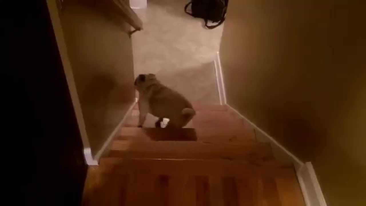 Chris Schnyder’s cute pug Otto somehow figured out that it’s easier for him to navigate up slippery hardwood steps if he climbs them in reverse.