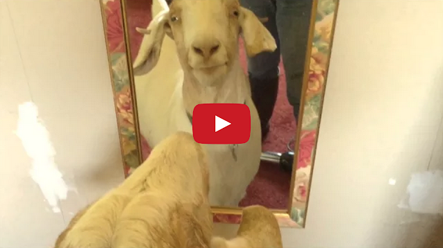 Caramel the goat, a resident of the Manning River Farm Animal Sanctuary in Kimbriki, Australia, unexpectedly finds herself in a mirror.