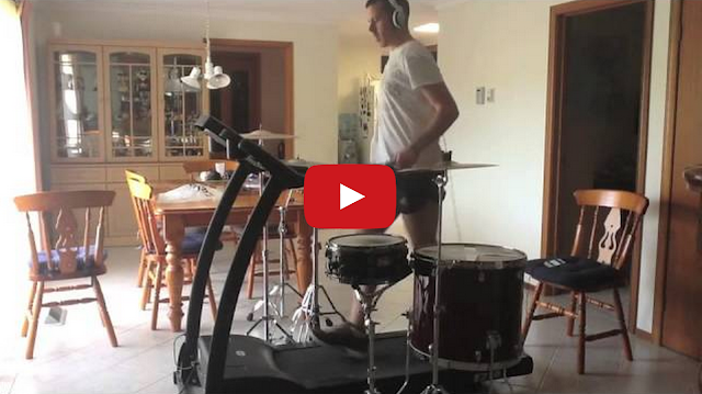 Brendan (aka bigZ Cymbals), a marathon runner and drummer from Australia, combines his two hobbies by impressively performing Metallica’s “Enter Sandman” on drums while running a steady pace on a treadmill the entire time.