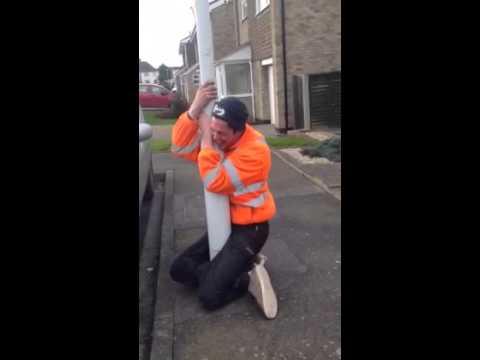 Two British guys demonstrate a simple way to make someone get helplessly stuck on a lamp post.