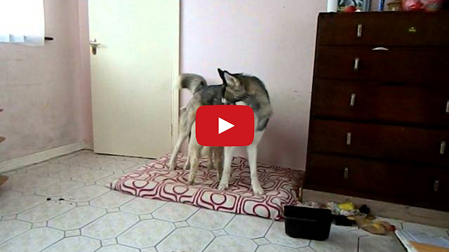 Husky Dog and Lamb Battle Over Bed by Tastefully Offensive A husky dog playfully tries to prevent his baby lamb housemate from taking over his dog bed. [lubimci]