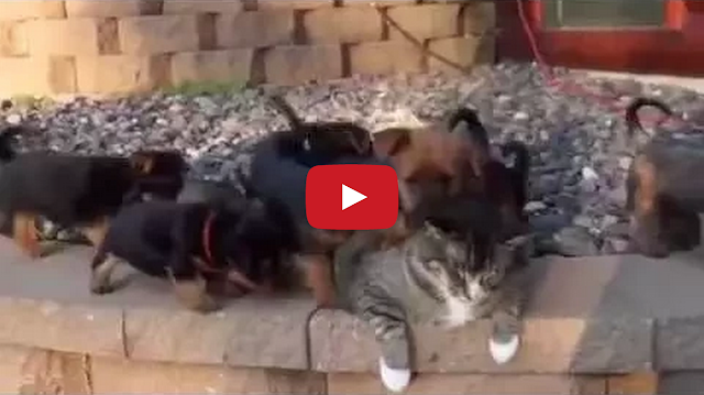 Puppies Try to Play With Indifferent Cat by Tastefully Offensive A big litter of cute puppies groom and attempt to play with a cat who just wants to be left alone. [afhv]