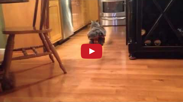 This fluffy cat appears to enjoy being chauffeured around the house in the back of a little remote-controlled dump truck.