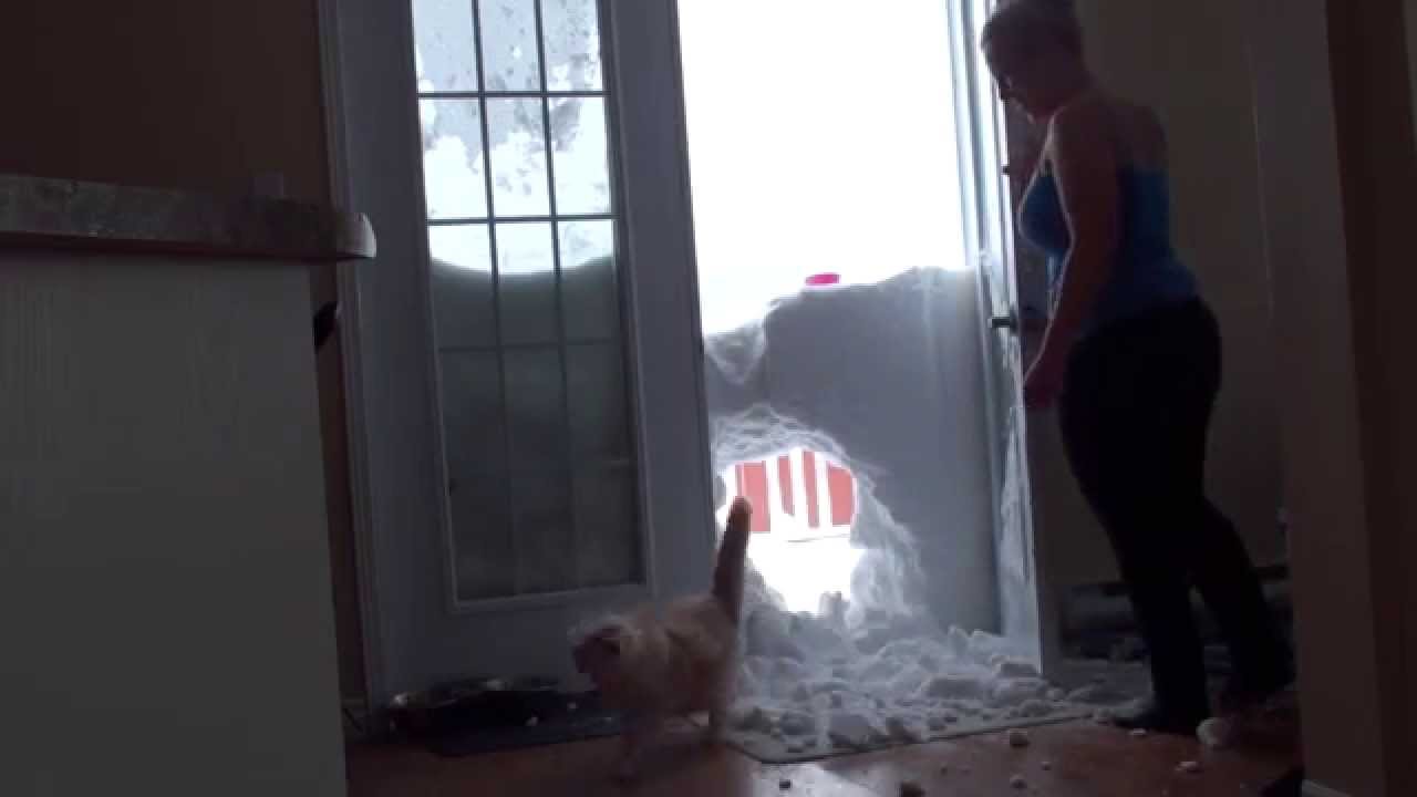 When he hears the sound of food in his dish, Ann Got’s big fluffy cat makes a dramatic entrance through a snow bank that’s blocking the front door.