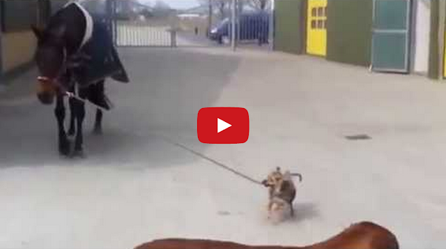 Determined Little Dog Takes Horse for a Walk