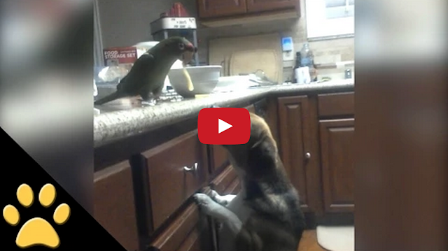Parrot Feeds Spaghetti to Dog Friend ByTastefully Offensive February 16, 2015 This generous parrot shares some of his spaghetti noodles with his canine housemate. [afvanimals]