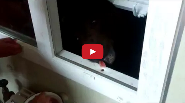A brown bear uses his huge paw to grab snacks from a Russian man who appears to be running a drive-through fast-food restaurant for hungry wild animals.