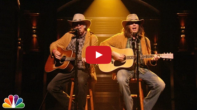 Tonight Show host Jimmy Fallon (impersonating Neil Young) and the real Neil Young perform his classic 1972 song “Old Man.”