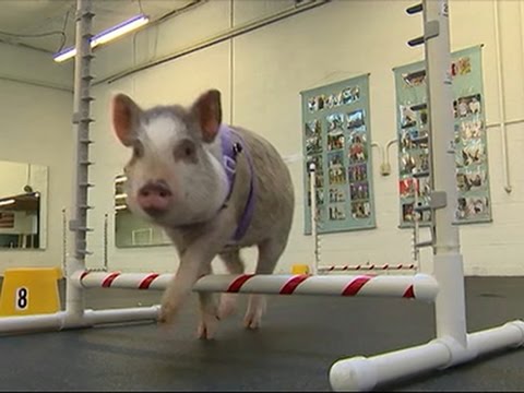 Amy, a 6-month-old, 45-pound miniature pig, is outsmarting all the dogs in her obedience and agility classes at the Family Dog Training Center in Kent, Washington.