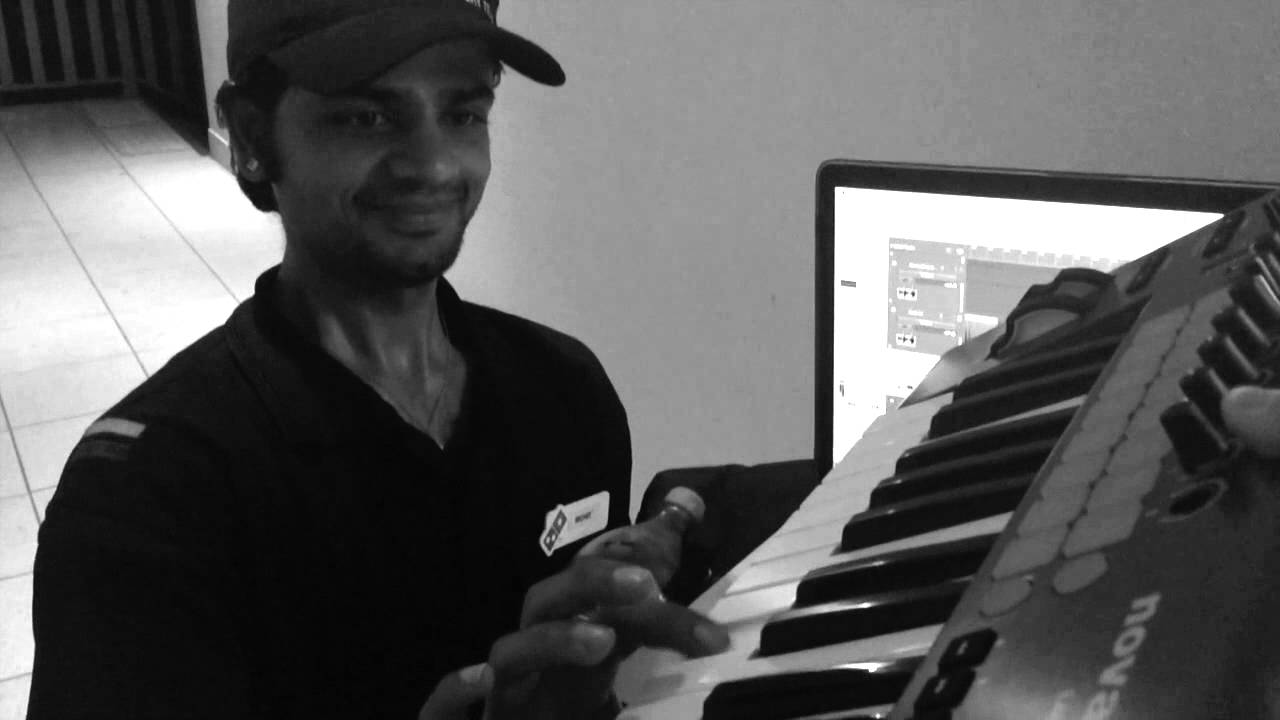 One of the members of Mashd N Kutcher, a techno DJ duo from Brisbane, Australia, spontaneously collaborates on a track with a Domino’s pizza delivery guy.