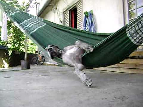 Nico, a huge great dane from Brazil, reluctantly wakes up when he gets caught blowing off his guard dog duties to sleep away the afternoon in a comfy hammock.