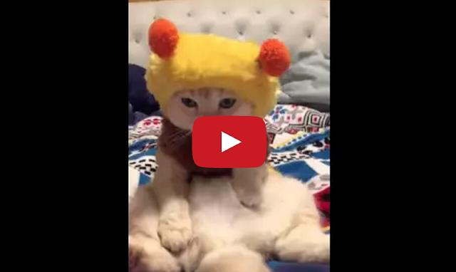Cat Watches TV in Adorable Bee Costume