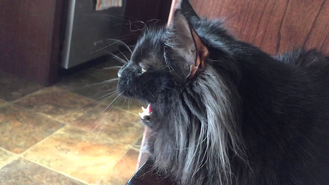 Fluffy Black Cat Chatters at Birds