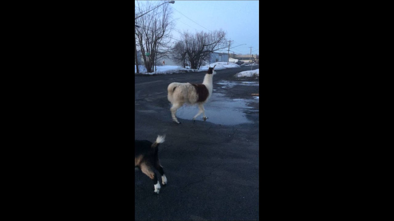 “I was leaving work on a friday night when I thought I saw a dog. Turns out it was a goat in the middle of a business type district in Liverpool, NY. Then I got bum rushed by a Llama and it scared the hell out of me as you can tell by the screams.”
