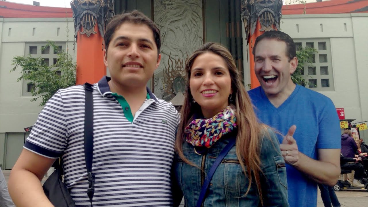 YouTube prankster Greg Benson used a cardboard cutout of himself to magically photobomb tourists outside the famous TCL Chinese Theatre in Hollywood, California.