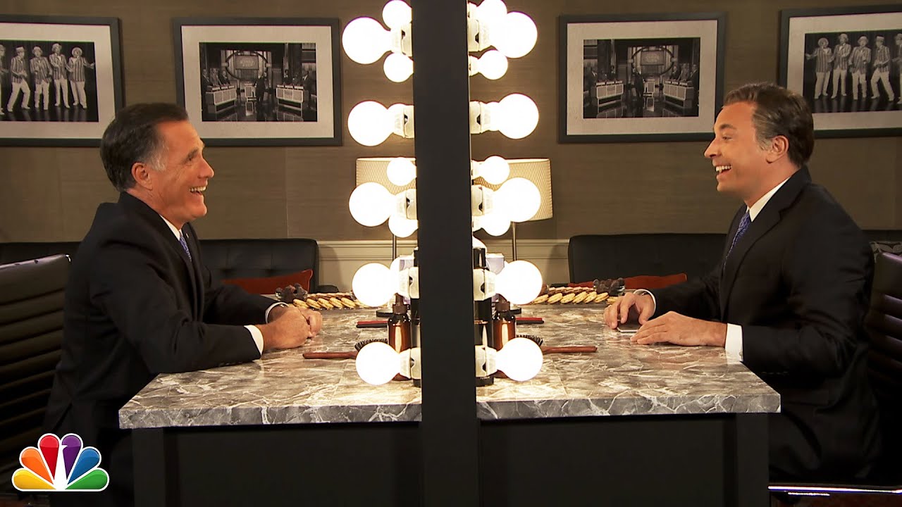 Before appearing on The Tonight Show, Former presidential nominee Mitt Romney has a conversation with his “reflection” (Jimmy Fallon) in the mirror.