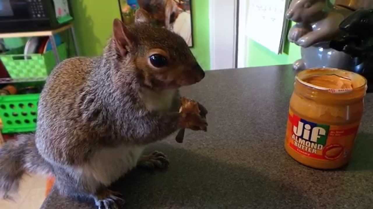 Pet Squirrel Uses Fork to Eat Almond Butter