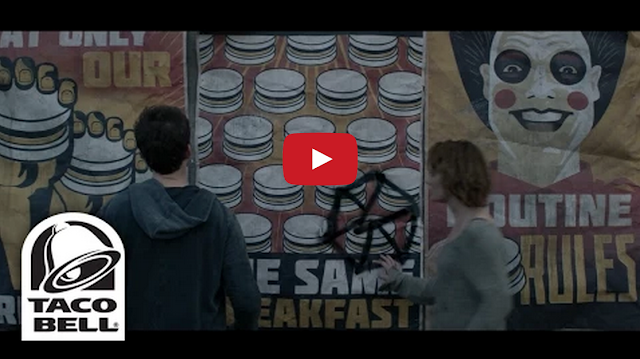 Taco Bell Pokes Fun at McDonald’s in New ‘Routine Republic’ Ad by Tastefully Offensive In this new short film by Taco Bell, a couple of hungry young rebels escape a propaganda-filled dystopian society to search for a better breakfast (McMuffin) alternative. [tacobell]