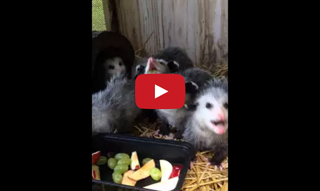 Adorable Baby Opossums Chowing Down on Fruit Together by Tastefully Offensive Six orphaned baby opossum siblings enjoy brunch together at a wildlife rehabilitation center in Pennsylvania. [amanda c/via neatorama]