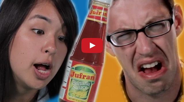 A group of Americans sample and describe a variety of unusual (to them, anyway) condiments from around the world, including banana sauce from the Philippines, spicy sambal terasi sauce from Indonesia, salted shrimp from Korea, fermented bean curd from China, and more.