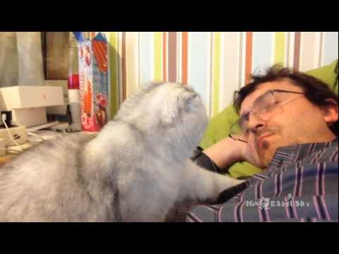 In this adorable montage, a bored Scottish fold cat politely attempts to wake his human up whenever he takes naps.
