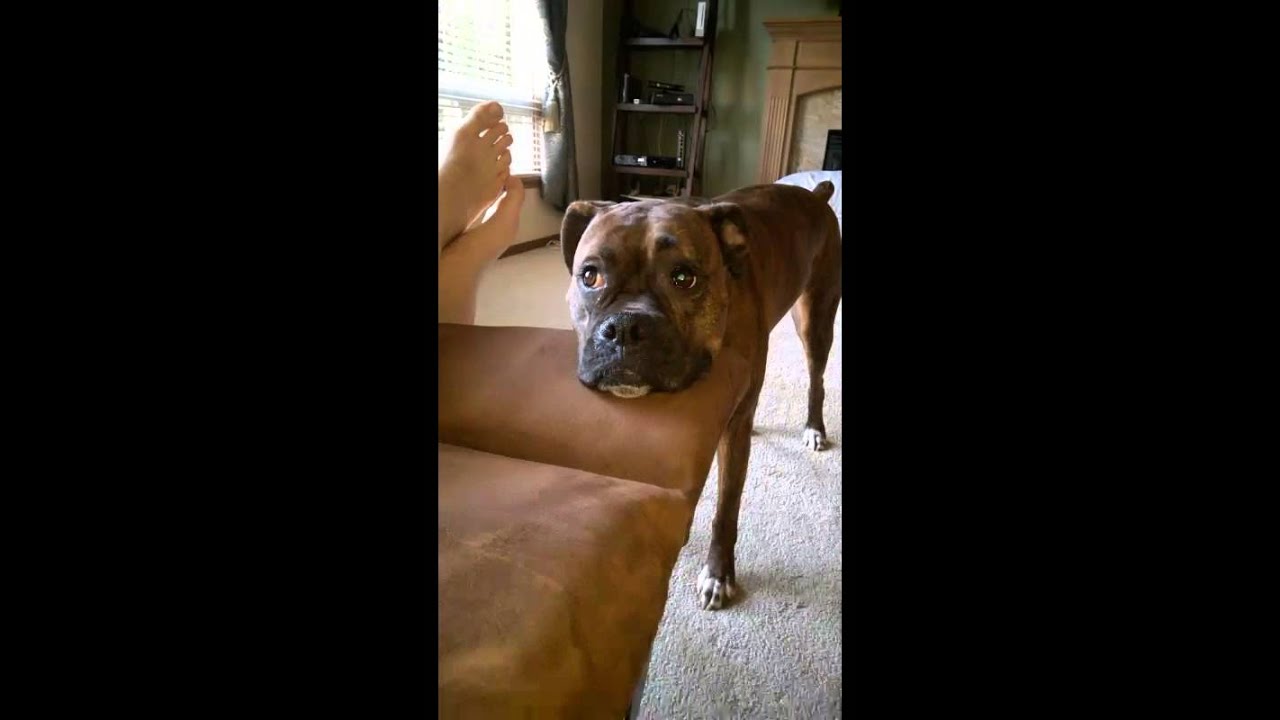 Lexi the boxer dog expresses her frustration with a long whine when she isn’t pleased with the lack of attention she’s receiving. Apparently, this is a common occurrence.