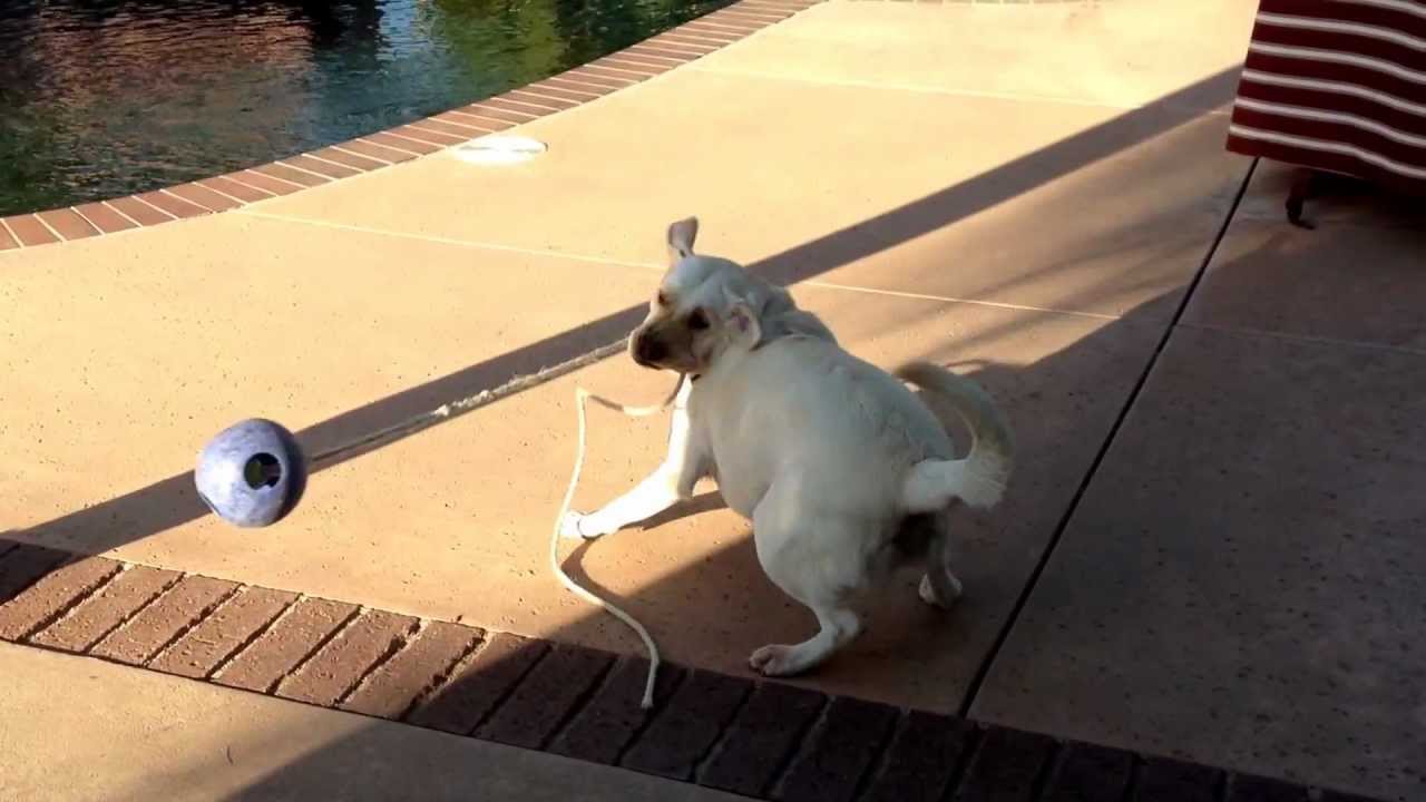 Dog Swings Ball Tied to Rope Like a Weapon