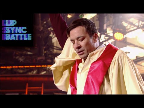 In the second round, Jimmy Fallon lip synced Madonna’s “Like A Prayer”, completely with a full church choir, and Dwayne Johnson lip synced The Bee Gee’s “Staying Alive” in ’70s attire.