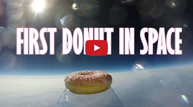 Some friends from Askim, Norway sent a sprinkles-covered donut to the edge of space (nearly 20 miles up) using a weather balloon.