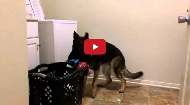 Baron the German shepherd is always willing to help with chores around the house. We previously saw him helping his human load the dishwasher. In this clip, the helpful pooch takes care of loading the washing machine all by himself.