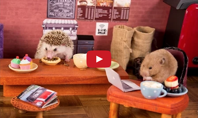 Hedgehog and Hamster Hang Out in Miniature Coffee Shop by Tastefully Offensive Humphrey J. Hedgehog and his hamster friend, Coco, hang out, drink coffee, chow down on treats, and browse the Internet at the Cute Critter Cafe. [humphrey]