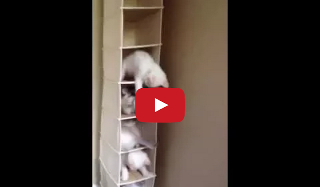 Kitten Condos by Tastefully Offensive Five adorable kitten siblings have fun hanging out in their own sections of a shoe organizer that’s hanging in their human’s closet. [aleya cunningham/via dpf]