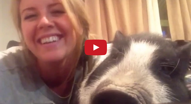 Pet Pig is Not in the Mood for Cuddles by Tastefully Offensive Virginia the pig adorably grumbles sounds of disapproval when her human tries to cuddle her. [virginiathepig/via dpf]
