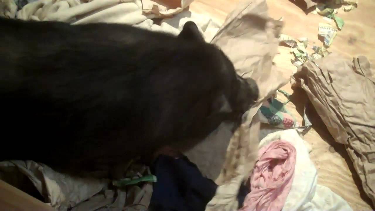 Moo the pot-bellied pig builds himself a comfy nest when he receives a cardboard box full of packing paper as a present.