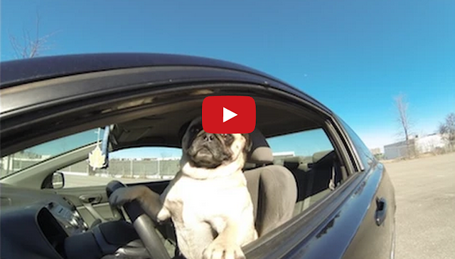 Atom the pug takes his human “dad” and “uncle” for a speedy car ride to the local PetSmart to pick up some dog treats (thanks to some clever editing).