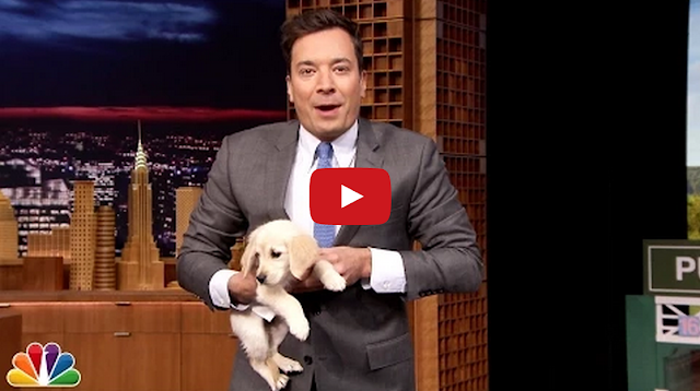 Tonight Show host Jimmy Fallon enlists sixteen adorable golden retriever puppies to help predict who will win this year’s prestigious Kentucky Derby horse race.